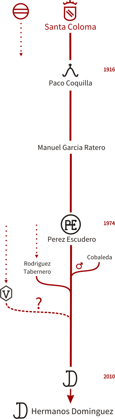 La famille Domínguez n’est pas novice dans l’élevage de bétail brave, les éleveurs actuels, Adrián et Enrique, ne représentent pas moins que la troisième génération de ganaderos. Le patriarche, José Domínguez Martínez, a débuté en 1962 en assemblant du bétail de différents éleveurs. De cet assemblage ressortent la caste Navarraise ainsi que la caste Santa Coloma qui va devenir le point d’ancrage de l’alchimie de la famille Domínguez. Si bien qu’elle va créer un encaste propre, le «Domínguez», peu connu sur le territoire ibérique de la tauromachie à pied mais très courtisé des amateurs de spectacles populaires où le bétail des Domínguez, encasté et sérieusement présenté est une garantie d’émotion.