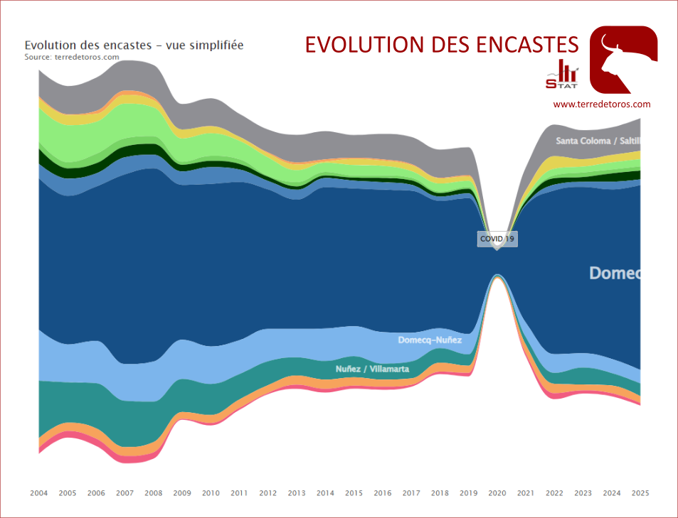 Graphiques dynamiques de l'évolution des encastes sur les vingt dernières années. Filtres par catégories d'arènes.
